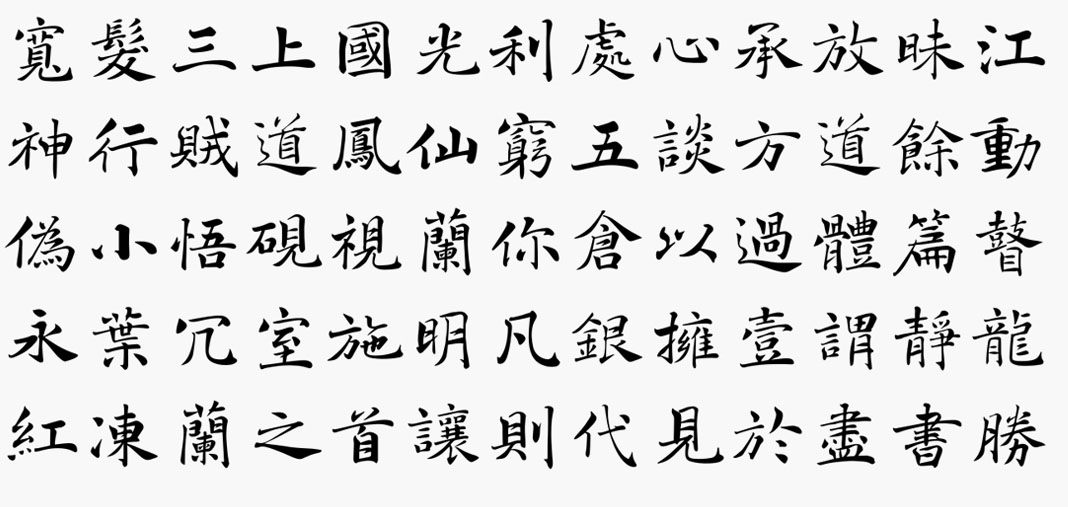 外在自由輕鬆,空靈瀟灑;內在胸有成竹,千錘百煉的通用高品質楷書字型。