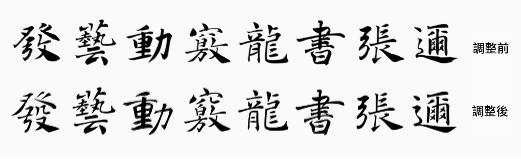 古人云:“取法乎上,而得乎中;取法乎中,而得乎下。” 作者從事設計並熱衷字體多年,在與古人對話的過程中經常會思考楷體的多面性:能不能創造出既有楷書的法度而又不會過於嚴肅,既有行書的靈動而又不會媚俗的高品質字體。它必須具備電腦字型的基本屬性,同時又符合現代的應用審美,尤其是用戶感觀上的自由、輕鬆和無拘無束的狀態。